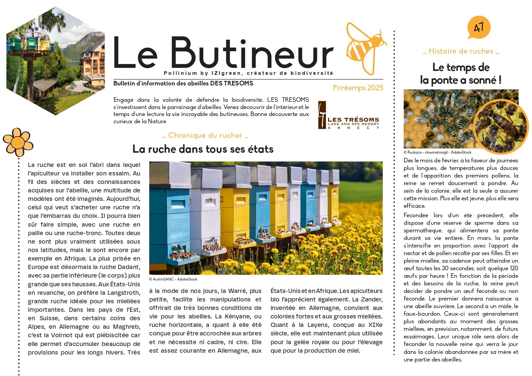 Nous sommes ravis de vous présenter l’édition printanière du Pollinium Butineur, le bulletin des abeilles des Trésoms !